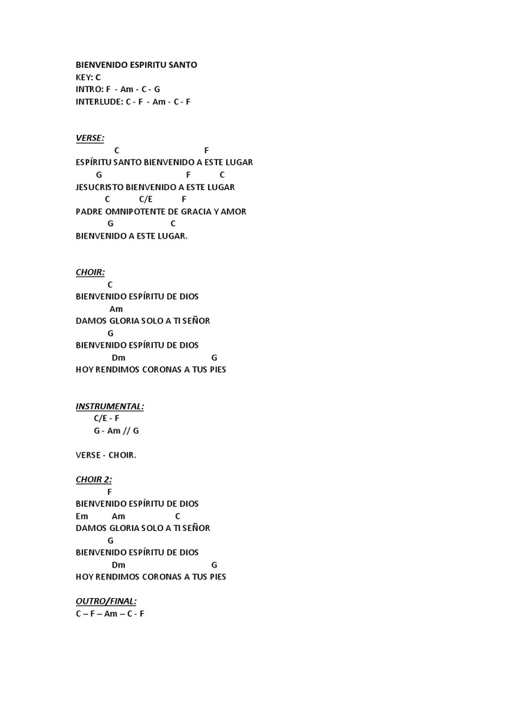 Bienvenido Espiritu Santo Chords Pdf